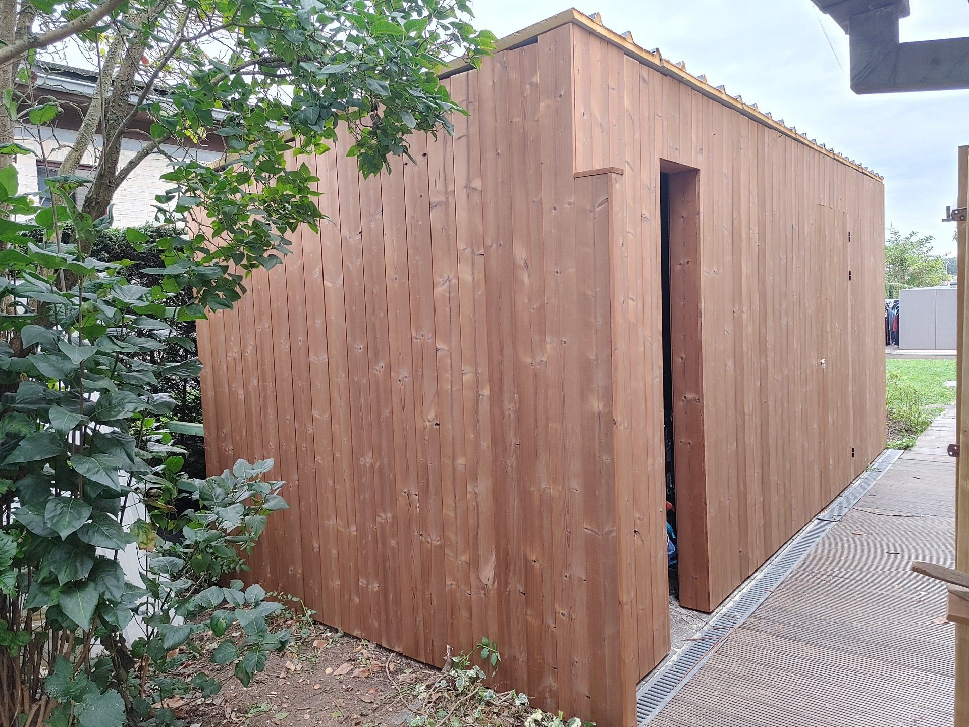 Maatwerk houten tuinhuis in thermo den